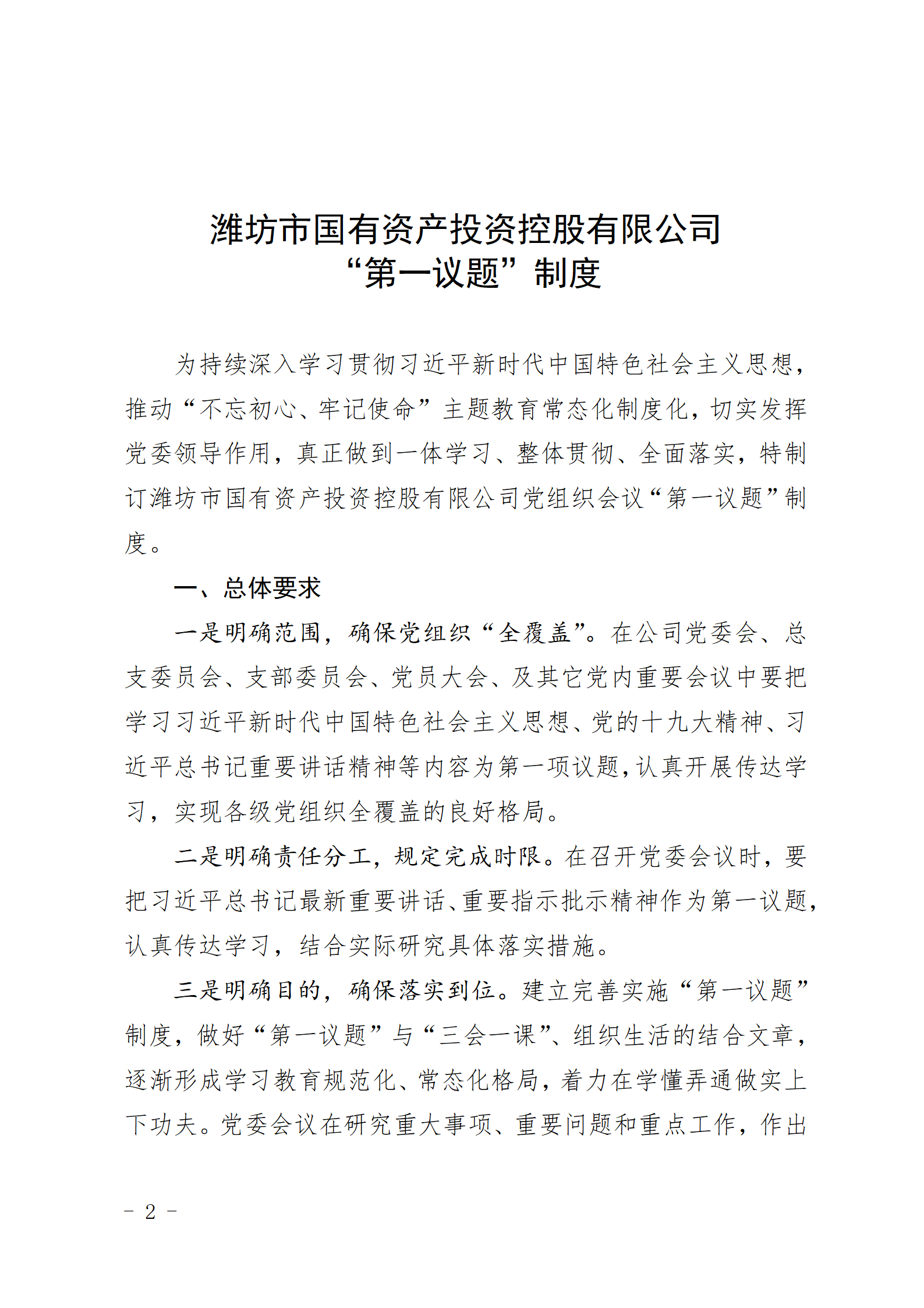 關(guān)于印發(fā)《濰坊市國有資產(chǎn)投資控股有限公司“第一議題”制定》的通知
